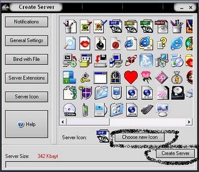 Open Server Icon. You can select the one you want to use with the server from the small pictures on the